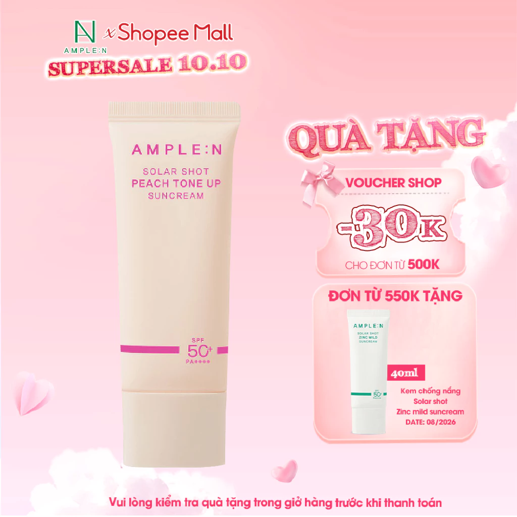 🔥 Kem Chống Nắng Nâng Tone Hồng Đào Ample:n Solar Shot Peach Tone Up Suncream 40ml Date T8/2026 đang giảm giá!