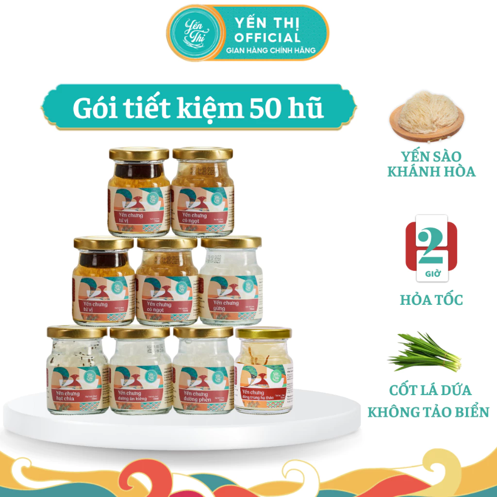 Yến Thị – Gói tiết kiệm 50 hũ, không hộp – Tổ yến Khánh Hòa chưng sẵn – hũ 70ml