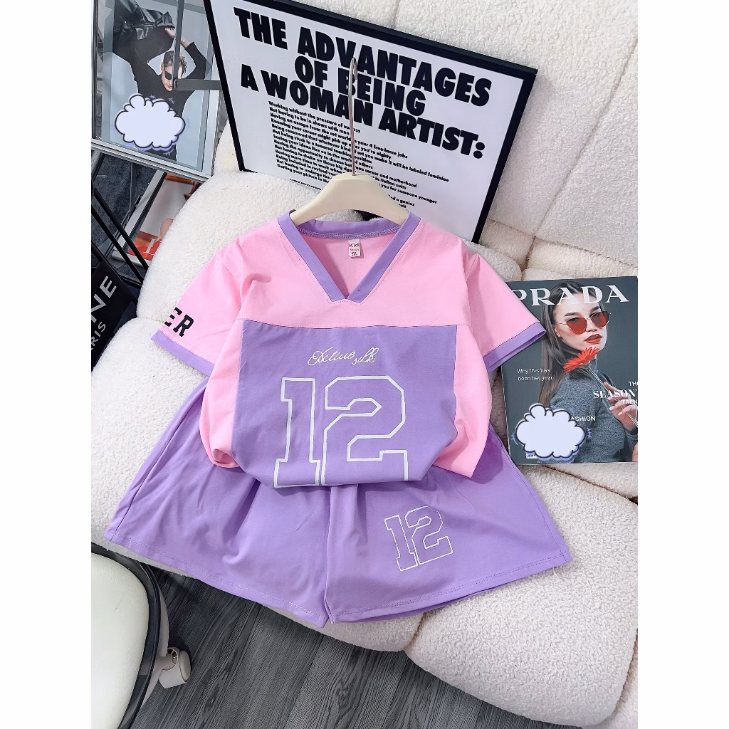 - Tên sản phẩm: Bộ quần áo cotton mềm mịn mát, đồ bộ THỂ THAO in số 12 cho bé gái mùa hè