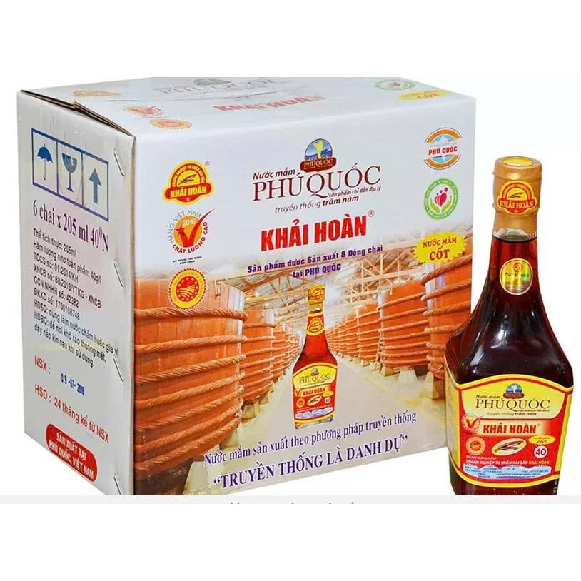 🔥 [ Gốc Phú Quốc] Thùng 06 chai nước mắm Khải Hoàn đặc sản Phú Quốc 215ml 40 độ đạm đang giảm giá!