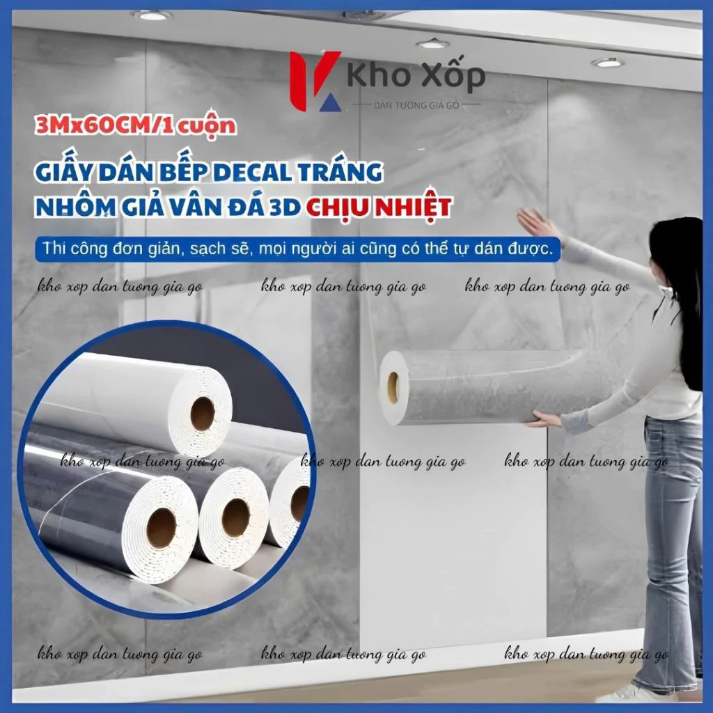 🔥 3 Mét Cuộn Xốp PVC (60cm x 3m) vân đá hoa cương sẵn keo tự dính, siêu đẹp chống thấm nước, phủ bóng. đang giảm giá!