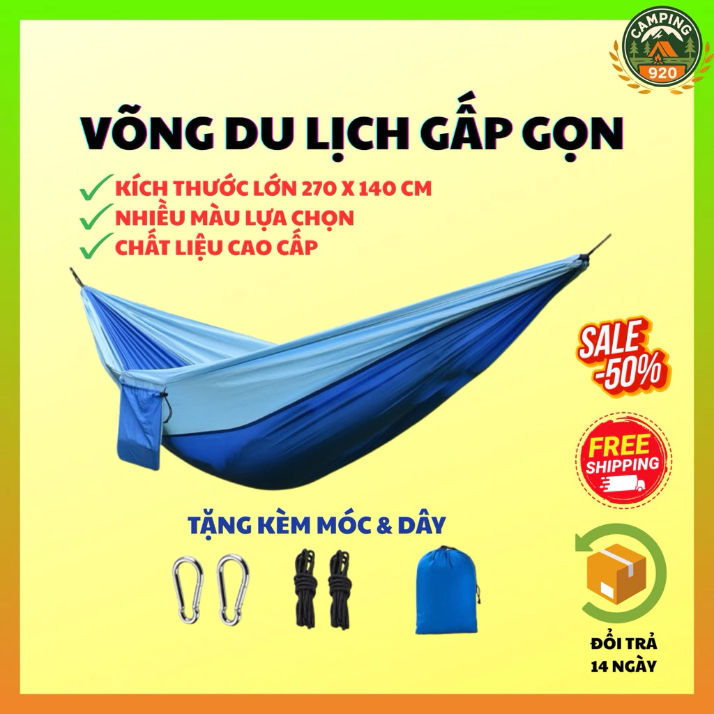 🔥 Võng Camping 270x140cm Vải Nylon Thoáng Mát, Kèm Dây Và Móc Khóa ,Võng Dù Du Lịch Cắm Trại Dã Ngoại đang giảm giá!