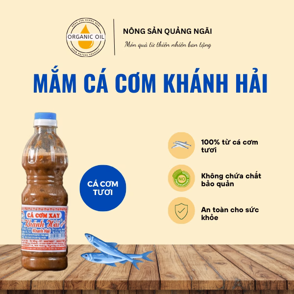 Một trong những sản phẩm mắm cá cơm chất lượng và được nhiều người tin dùng là Mắm cá cơm Khánh Hải Chai dung tích 500ml Đặc sản Đà Nẵng Đậm Đà Hương Vị Truyền Thống. Sản phẩm này được làm từ cá cơm tươi và muối sạch, với công thức truyền thống và quy trình sản xuất nghiêm ngặt.