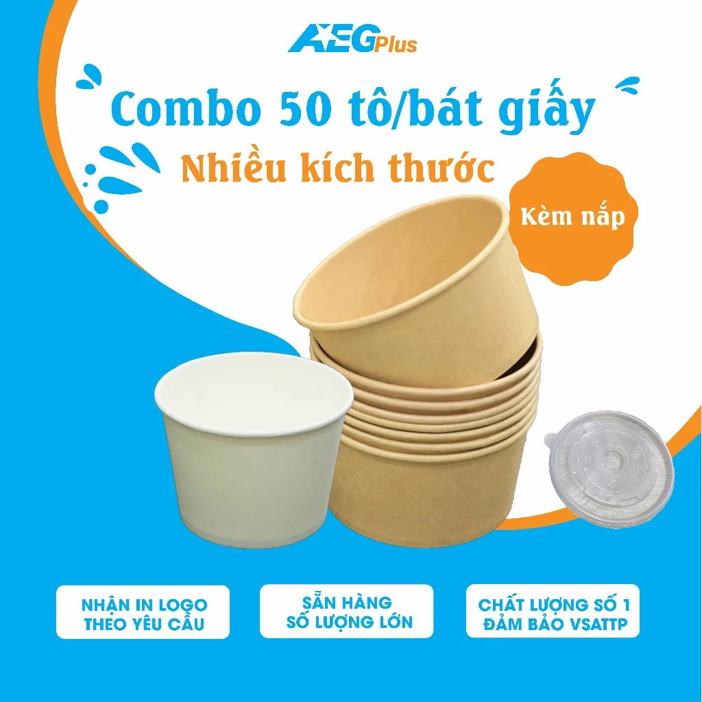 Ví dụ, Set 50 chiếc tô/bát giấy loại cao cấp kèm nắp bằng PP, nhận in logo thương hiệu theo yêu cầu là một sản phẩm tô giấy cao cấp kèm nắp được nhiều khách hàng ưa chuộng. Sản phẩm này được làm từ giấy cao cấp, có tay cầm và nắp đậy, và có thể được tùy chỉnh với logo thương hiệu của bạn.