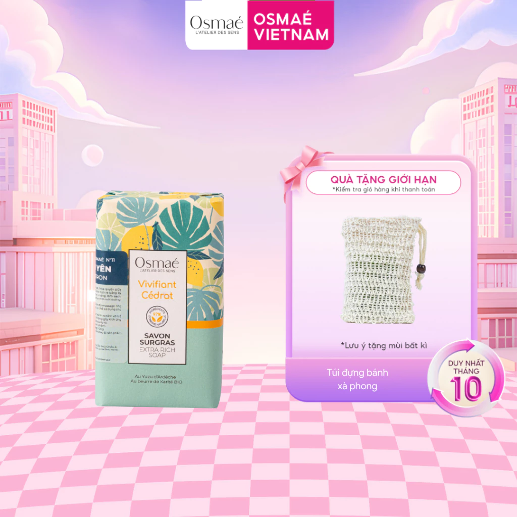Với công thức độc đáo, xà phòng Osmaé không chỉ giúp làm sạch da mà còn hỗ trợ cấp ẩm và mềm da. Sản phẩm này rất phù hợp với những người có làn da nhạy cảm hoặc đang tìm kiếm một giải pháp chăm sóc da tự nhiên.