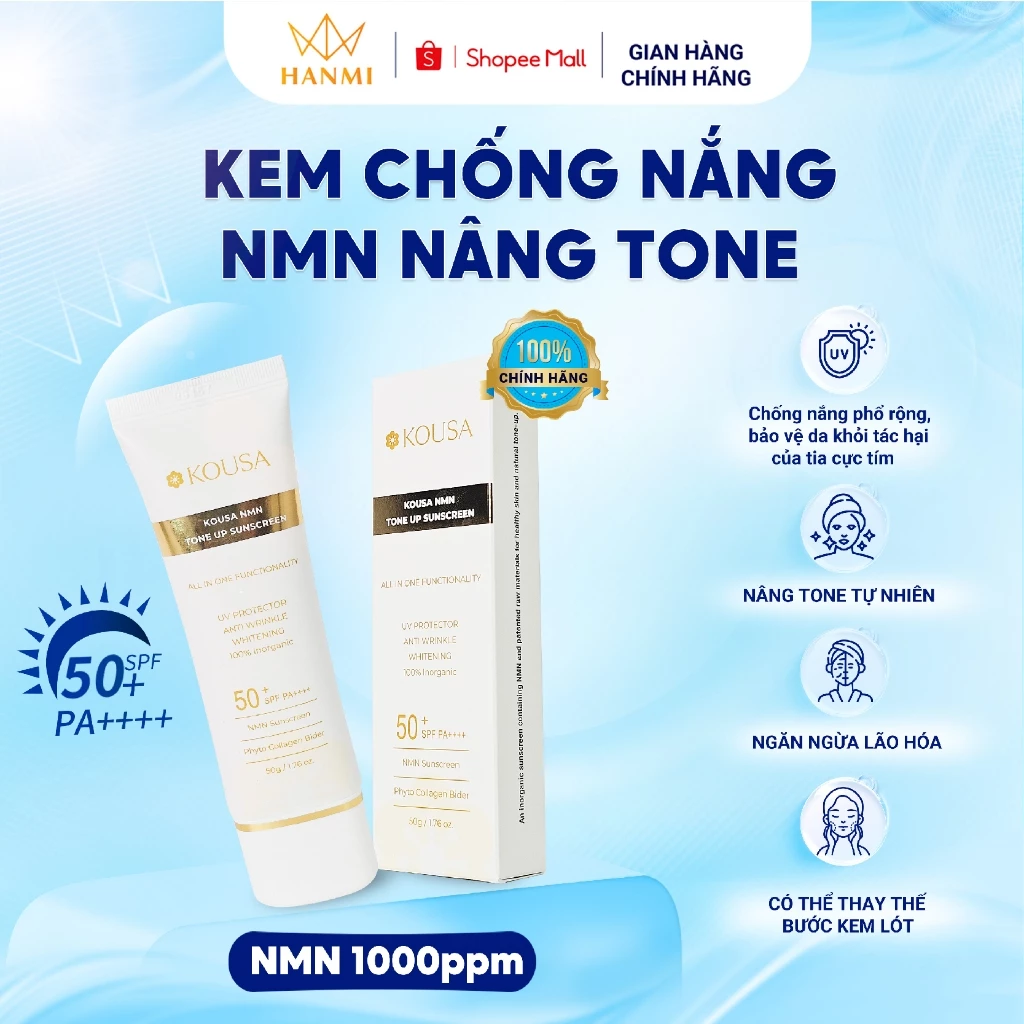 🔥 Kem chống nắng vô cơ nâng tone dưỡng trắng SPF 50+ PA++++ NMN 1000ppm Kousa 50g đang giảm giá!