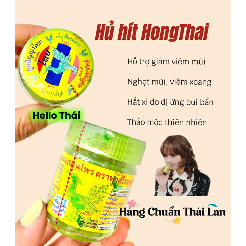 - Thành phần tự nhiên: Sản phẩm hít thông mũi thảo dược Hồng Thái chứa các loại thảo dược như menthol, camphor, và các loại tinh dầu thiên nhiên giúp thông mũi và giảm viêm.